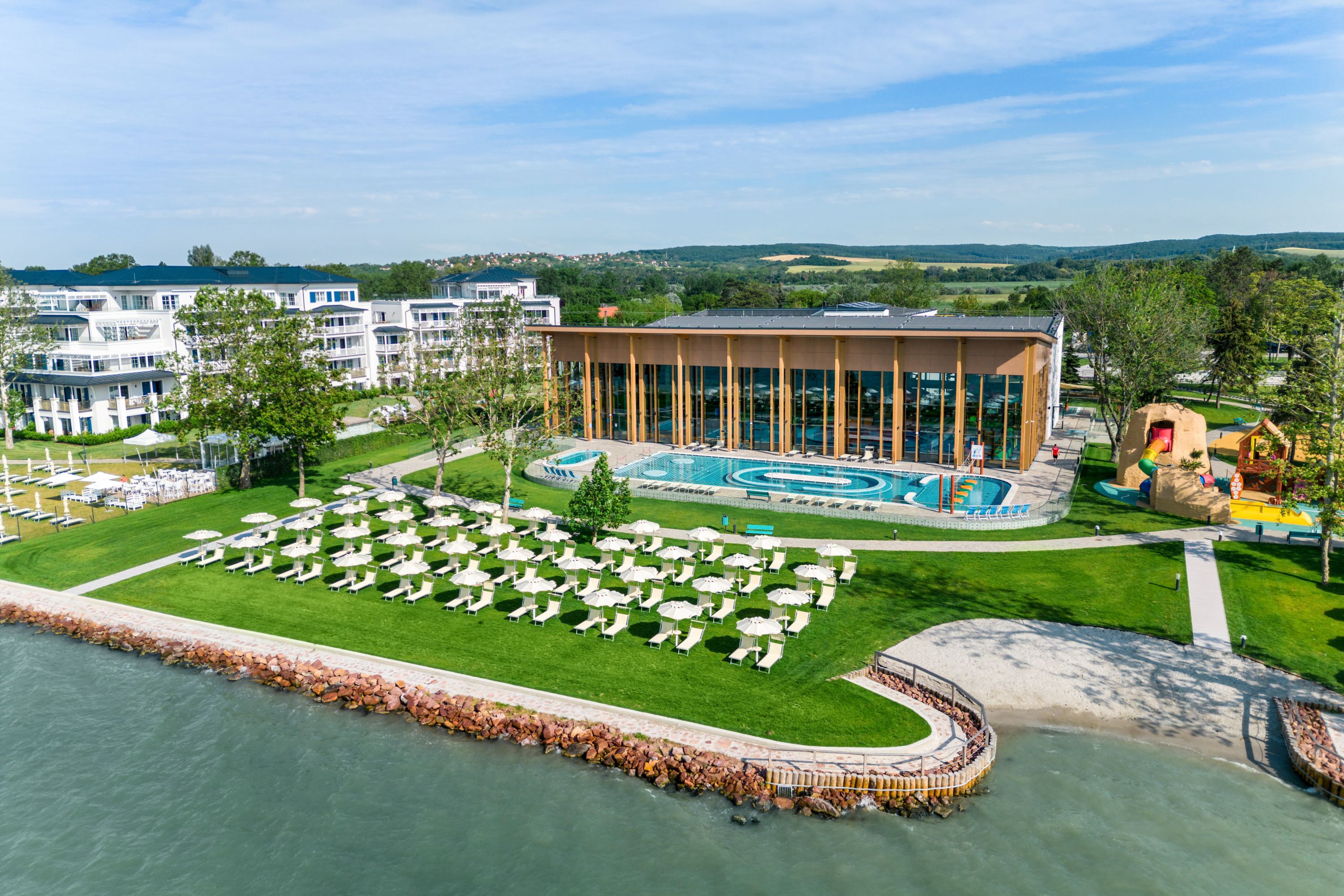 Il Mövenpick Balaland Resort Lake Balaton rappresenta una scelta eccellente per le famiglie in Ungheria. Questo resort si distingue per il suo affascinante tema "Il giro del mondo in ottanta giorni" e dispone di piscine sia interne che esterne nel BalaLand Family Park, rendendolo la destinazione ideale per ogni fascia d'età.